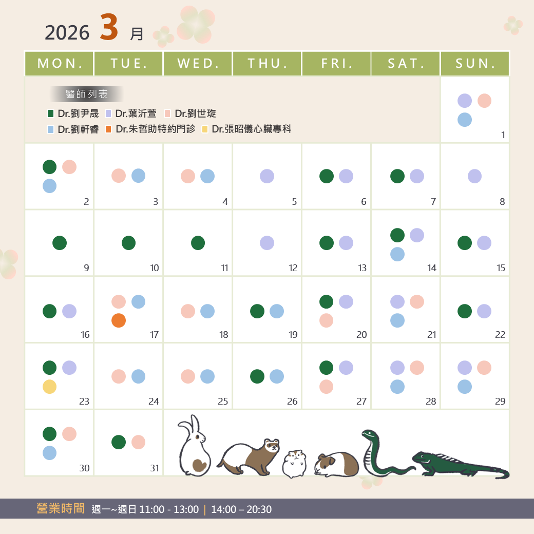 2026年3月醫師班表